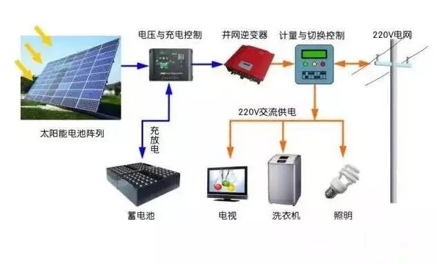 与电力网相连接的太阳能光伏系统称为光伏并网系统,光伏并网发电系统有分布式并网与集中式并网